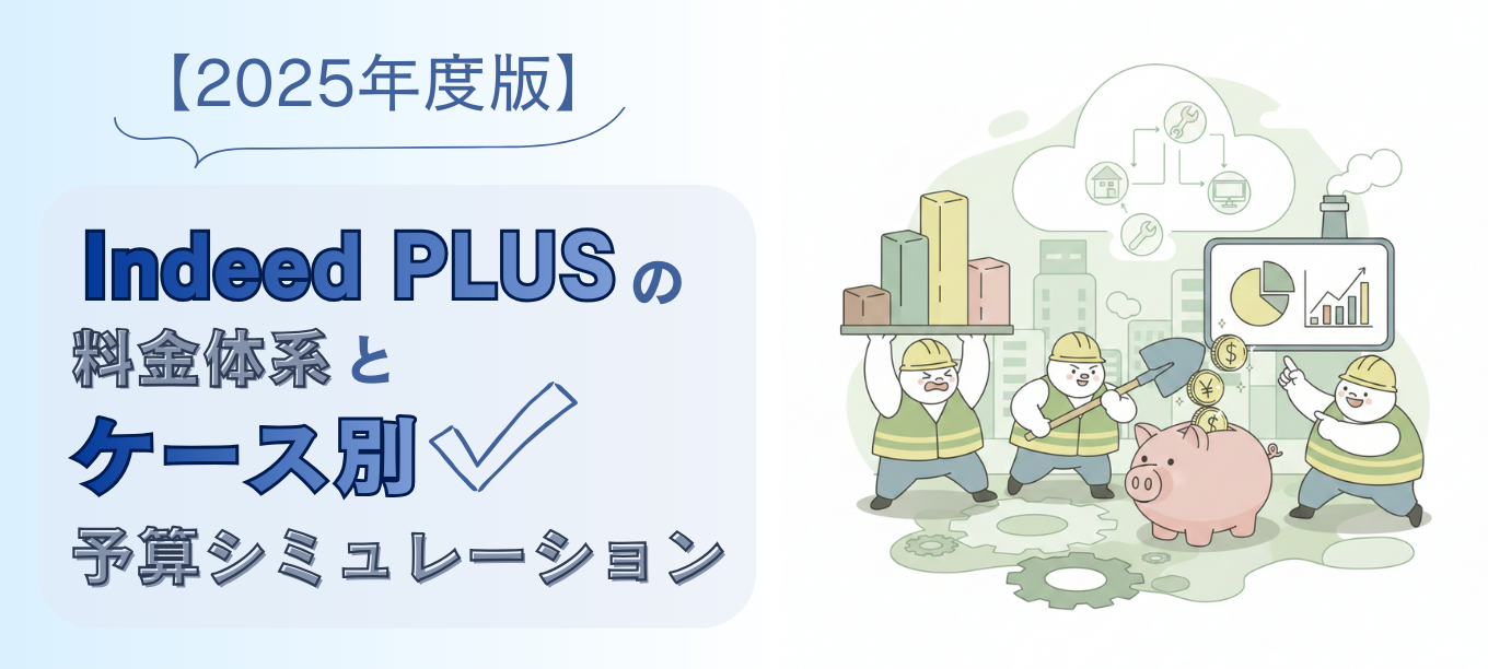 「Indeed PLUS(インディードプラス)を導入したいが、どれくらいの予算を用意すればいいのか分からない」「従来のIndeed広告と料金の考え方はどう違うのか?」といった疑問をお持ちの採用担当者様が増えています。本記事では、Indeed PLUSの料金体系とケース別予算シミュレーションについて解説します。