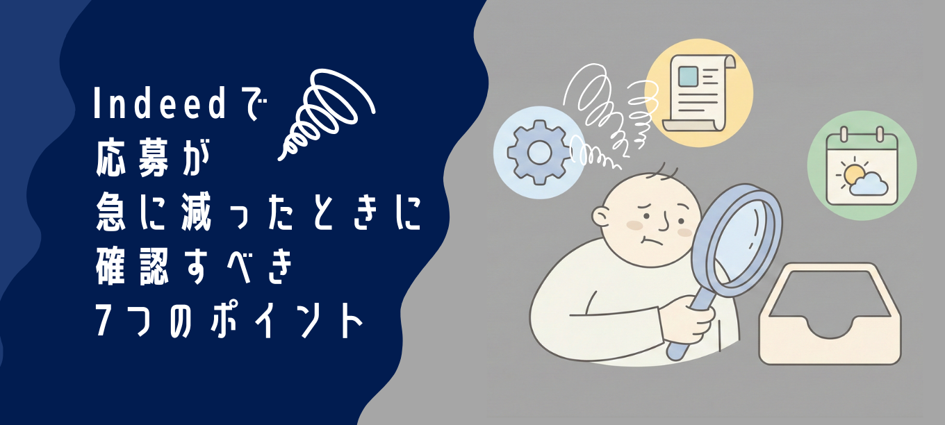 本記事では「先週まで順調だったのに、今週に入って急にIndeedからの応募が止まった」「運用を変えていないのになぜか表示回数が激減している」など、Indeedで応募が急に減ったときに確認すべき7つのポイントについて解説します。
