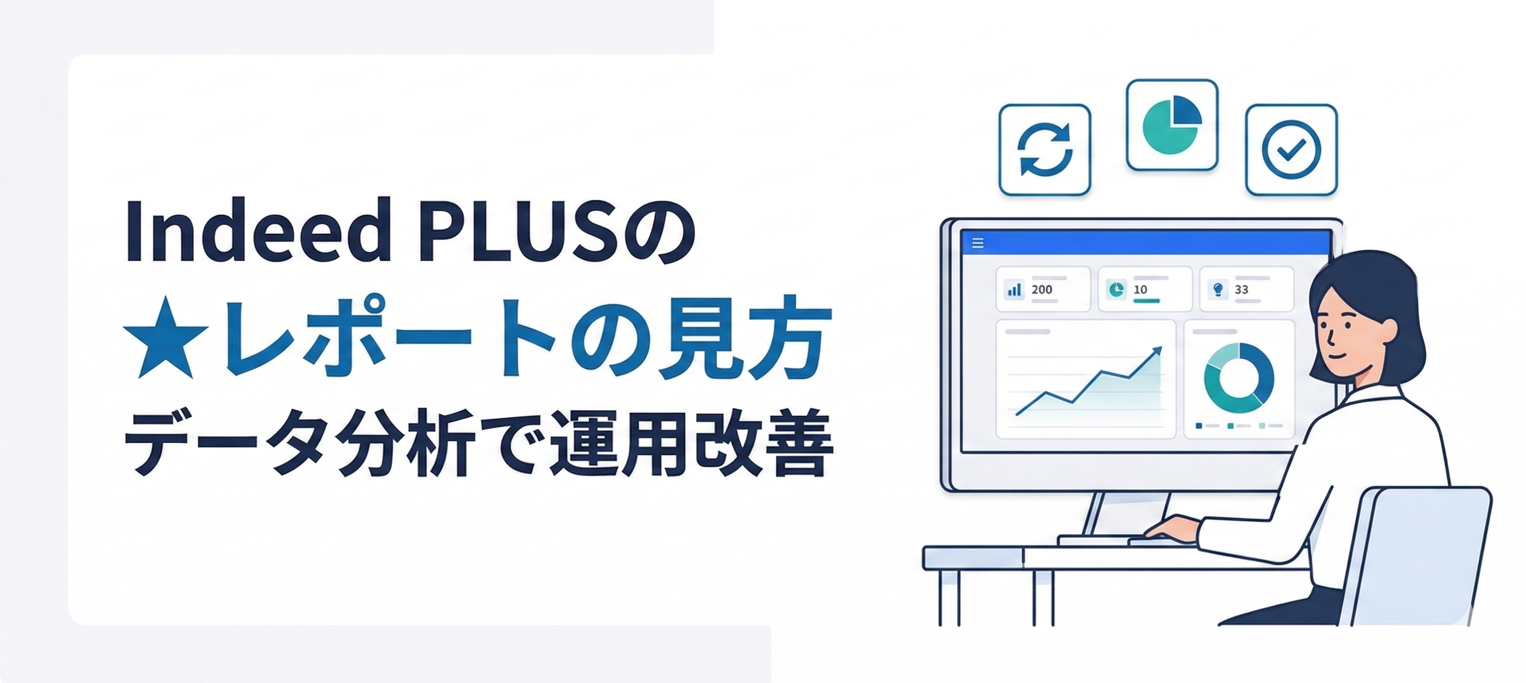 Indeed PLUSのレポート画面の見方を項目別に解説。表示回数・クリック率・応募率などの指標の読み方と、データを運用改善に活かす分析手法を紹介します。